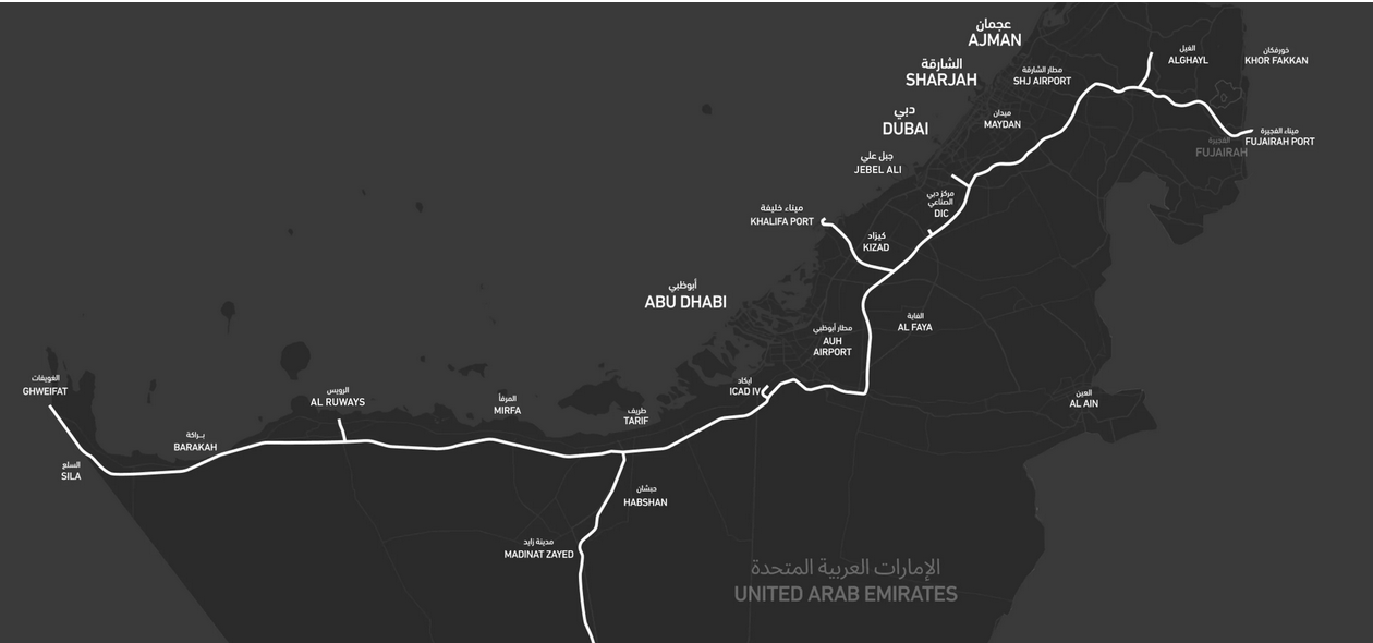 The core of the program is the UAE National Rail Network, which will be entirely UAE-based, and there are plans to link with Sohar inOman via the Hafeet Rail project.